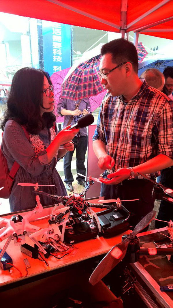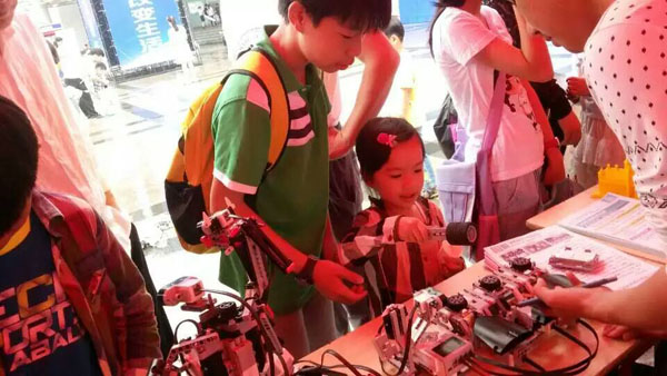此次活动周,我院参展的有汽机学院的乐高机器人、新能源汽车科普、机动车司法鉴定与维权热线,电子工程系的小型无人机飞行器、智能视力检查仪和材料系的3D打印技术。广场上,很多市民对我院展区的作品十分感兴趣,尤其是钟振忠老师带来的乐高机器人和李庆海老师带来的小型无人飞行器,吸引了大批的学生和家长。李庆海老师一边介绍一边教小学生们操作不同的机器人,他说此行带来了七种飞行器,有灭火机器人、跳舞机器人,主要向市民推广一下,特别是想激发青少年对科技的兴趣。温州市实验小学学生何聪汝在亲手操作了机器人后说: “我还是第一次玩这么多不同功能的机器人,真正感受到了科技的奥秘和神奇,很开心。”