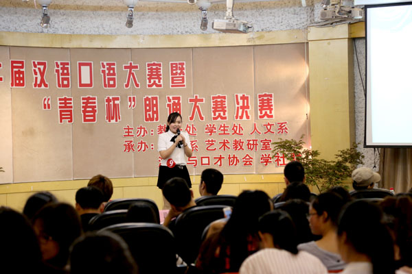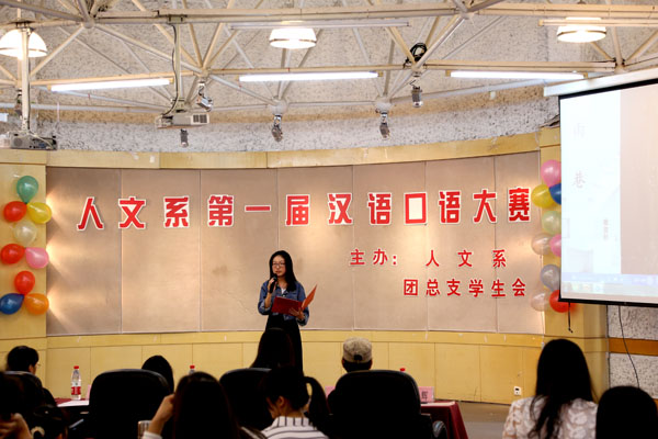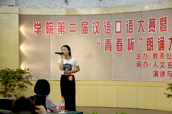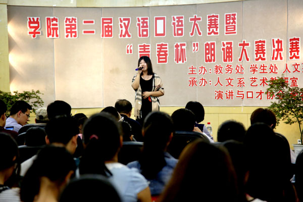 汉语口语大赛的内容为《省大学生汉语口语竞赛朗读题库(2015)》及《大学生汉语口语竞赛初赛备稿演讲题库》中规定的作品、题目。我院本次竞赛分海选、复赛与决赛三个阶段进行。