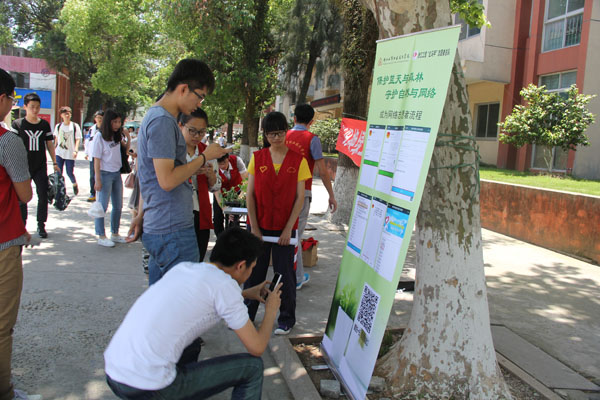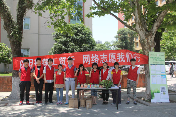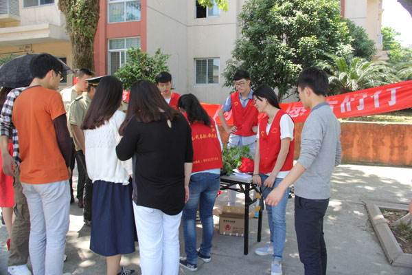 513我院在学子广场举行了主题为“以旧换绿工贸行,网络志愿我们行”大型环保活动。从中午12时至下午5时,不断有同学加入到此次大型环保活动,在校园中构成了一道独特的风景线。