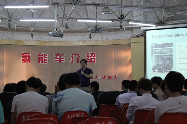 本周四,由汽机团委学生会主办的以氢能车介绍为主题的讲座活动在多功能厅举行。主讲人为汽机学院台湾籍博士钟振忠,他在讲座中与各专业的同学们分享汽车行业的现状及氢能车在未来发展的前景。