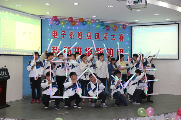 实际上,班级之间的比赛早就在报名的时候就开始了。每个班级利用晚上、周末的时间排练节目,有小品、哑剧、歌曲等形式,表达了同学们大学生活无限的青春魅力,同时也展现了班集体的凝聚力和创新能力。班主任与班级同学之间的互动,更是把现场推向了高潮。最终,台湾合作办学电信1405班获得冠军,机电1401班获得亚军,电信1403班(机器人方向)获得季军。