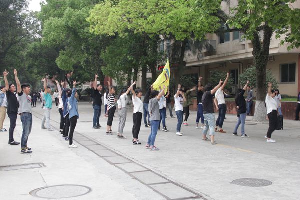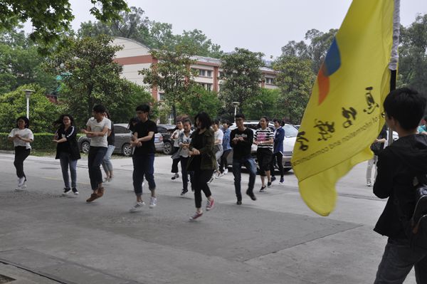5月4日“青年节”当天中午,信息传媒学院的同学们在F幢公寓前开展了“快闪”舞蹈活动。