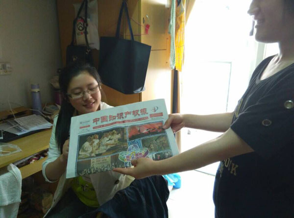 此外,知识产权学院的学生志愿者们领取了600份《4·26中国知识产权报》系列特刊,分发到其他分院系、职能部门、学校图书馆与学生宿舍,积极宣传知识产权工作。