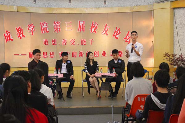 4月24日,在学院迎来55周年校庆之际,成教学院在多功能厅隆重举办了以“敢想、善变、能干--解放思想,勇于创新的创业之路”为主题的第三期校友论坛。本次活动邀请到了成教学院优秀校友——星悦广告传媒总经理徐乙秀,三想控股集团销售总监陈礼党,桂香村营销部区域经理朱涛,索菲亚贸易有限公司总经理周晓飞,温州时新电器科技有限公司董事长王仁波担任嘉宾。