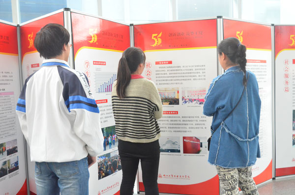 为庆祝学院55周年校庆,加深全院师生对学院发展的了解,由党务工作部举办的学院建校55周年办学成果展在学院六号教学楼大厅展出。