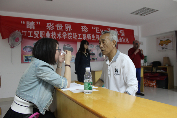 为进一步弘扬社会主义核心价值观,充分发挥高校服务社会职能,增强专业服务能力。4月3日下午,学院轻工系师生志愿者们一行10人走进杨府山社区,为社区居民和有视力障碍的残疾人开展检查视力、眼病检查、专家咨询、矫正镜架、清洗眼镜片等免费义诊活动,并向社区居民发放爱眼护眼宣传资料。