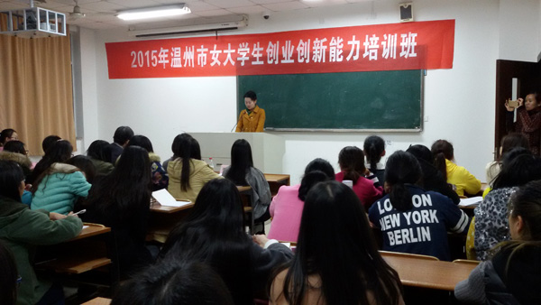 3月25日晚,我院创业学院与温州市妇女联合会在教学楼6403教室共同举办“2015年温州女大学生创业能力培训班”开班仪式。通过优势互补、资源共享,协同推进我市女大学生创业理论与实践教育,培养更多女性创业精英人才,服务区域社会经济健康发展。