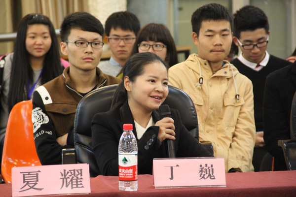 陈碎雷老师为同学们简要介绍了职业生涯规划大赛的赛事安排,他动员同学们重视职业生涯规划,完善自我综合素质,提高创新创业能力;并且和在场的同学们分享了比赛的经验和体会。接下来陈亮亮、邵宏达分别从职业生涯大赛创业组、职业组等不同角度分享了自己的比赛经验,建议同学们赛前在指导老师帮助下,仔细撰写比赛文本,重视职业生涯规划各个项目环节,全面考虑各种困难和问题。夏耀老师和丁崴老师从指导老师的角度介绍了职业生涯规划如何定位、如何实施、如何职业测评等共性问题。在互动环节,各指导老师针对现场同学的各种疑问做了详细解答。