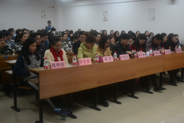 经贸学院党总支书记项光春、第一党支部书记周妍妍、第二党支部书记朱杨琼及各党小组组长向政、郑雪琦、高莎出席并担任此次竞选评委,经贸学院团总支学生会及2014级入党积极分子近150人观看此次竞选。