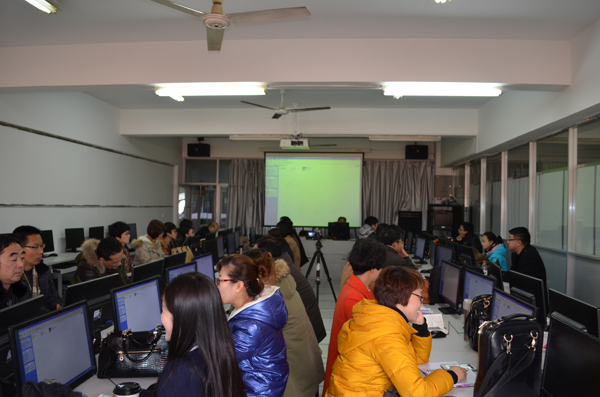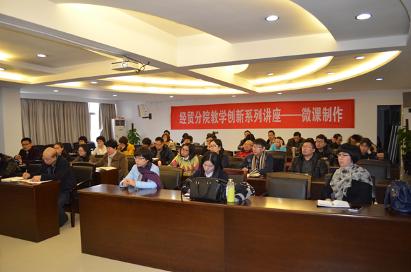 王岚教授的讲座围绕微课程概述、微课程基础、微课程制作的软件工具、微课程制作实例、微课程制作标准等几块内容展开,她以概念陈述、实例讲解、现场示范等方式详尽介绍了微课的单播式、交互式、虚拟现实技术、电子书等四种制作方法,并推荐了丰富多样的课程制作应用软件和网络资源,极大地拓宽了在座教师关于微课开发的思路与视野。此外,针对微课制作的注意事项、微课开发取得的成绩、存在的问题、微课的应用等内容,王教授也一一作了介绍。下午,教师们对微课制作软件进行上机操作,王教授进行现场指导,并积极回答老师们的提问。他还鼓励老师积极参加教育部信息中心对微课制作的专题培训,并愿意今后给经贸分院教师进行长期辅导。