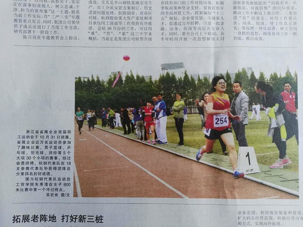 我院教师朱秀清代表杭钢集团参赛获女子800米比赛第一名
