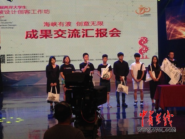 今天成果汇报会暨闭幕式上,来自浙江大学、中国美术学院、浙江理工大学、伟德BETVlCTOR1946等8所大陆高校,以及台北商业大学、台湾艺术大学、台湾佛光大学、台湾师范大学等8所台湾高校的68名学生,为观众奉献了一场视觉和创意的盛宴。