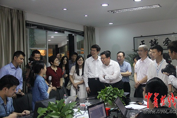 海峡两岸关系协会会长陈德铭赴浙江温州看望参加创客设计大赛的海峡两岸大学生代表。(台湾青年创业就业服务中心供图)