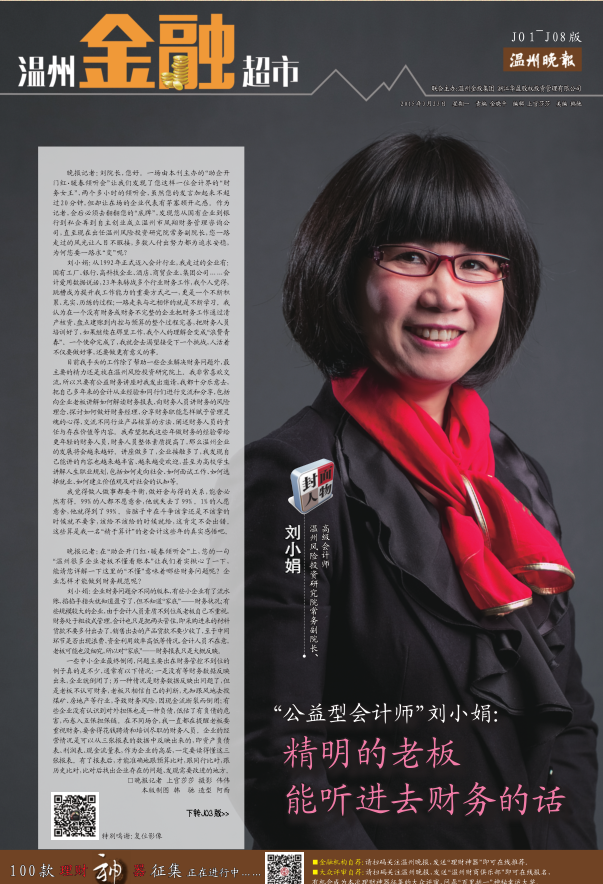 晚报记者:刘院长,您好。一场由本刊主办的“助企开门红·暖春倾听会”让我们发现了您这样一位会计界的“财务女王”,两个多小时的倾听会,虽然您的发言加起来不超过20分钟,但却让在场的企业代表有茅塞顿开之感。作为记者,会后必须去翻翻您的“底牌”,发现您从国有企业到银行到私企再到自主创业成立温州市凤翔财务管理咨询公司,直至现在出任温州风险投资研究院常务副院长,您一路走过的风光让人目不暇接,多数人付出努力都为追求安稳,为何您要一路求“变”呢?