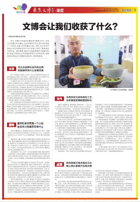 昨日,为期5天的温州文博会落下帷幕,作为一次地方文化展示的大舞台,这次文博会不仅让温州市民体验了一次时尚、创意、文化的融合之旅。同时,也让来自不同地方的艺术家和文创产业从业者之间有了更直观的交流机会。通过参展,彼此从中能获得哪些可借鉴的经验,给自己和地方文化发展会带来什么样的启发,这都是他们参加这次文博会后收获的一笔宝贵财富。