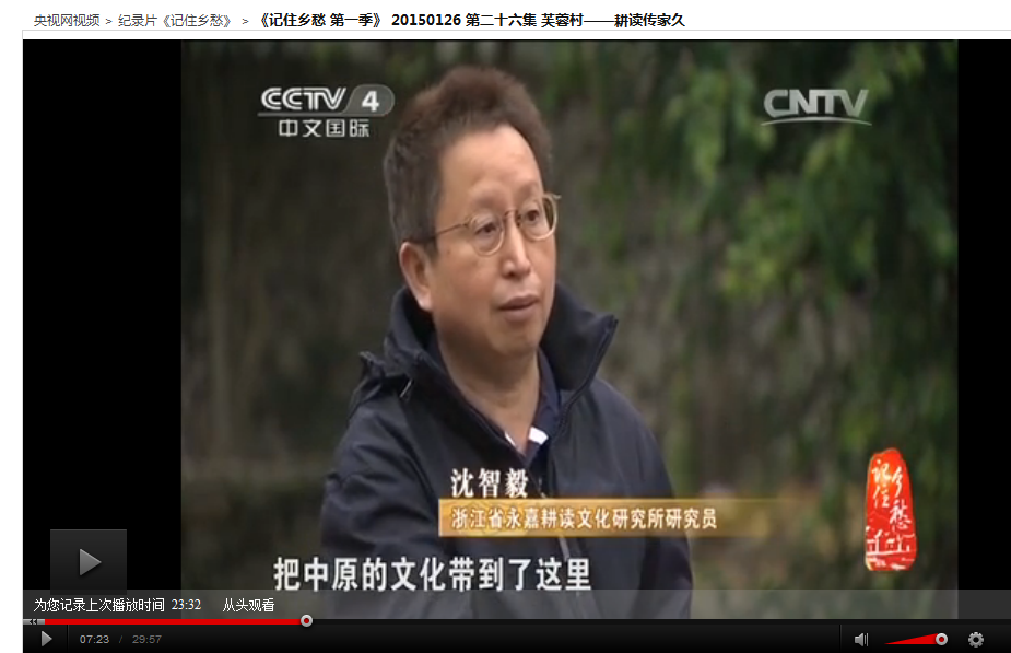 1月26日,由央视拍摄的【记住乡愁】第26集《芙蓉村:耕读传家久》在央视中文国际频道(CCTV4)首播,我院区域文化研究中心沈智毅老师接受采访。