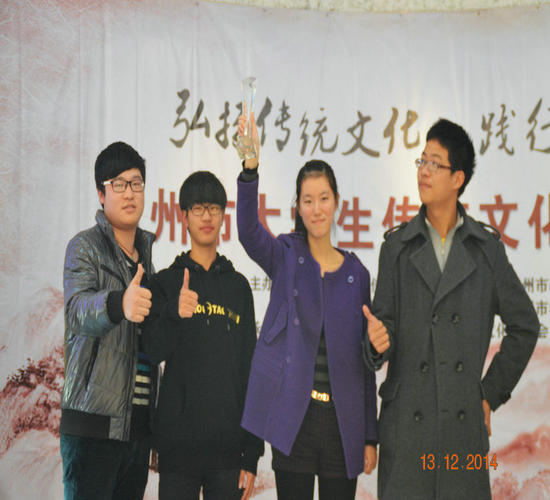 据悉,温州市大中学生传统文化知识竞赛自11月份启动,先后举行了个人赛和团体赛,个人赛以网上知识竞答形式举行,鼓励温州市所有大中学校学生参与,线上参与学生达2000余人。作为2014年青少年社团文化季的重要活动之一,通过举办温州市大中学生传统文化知识竞赛,进一步普及和弘扬中华传统文化,传承民族精神,促进青少年学生提升民族文化的认同感和荣誉感。