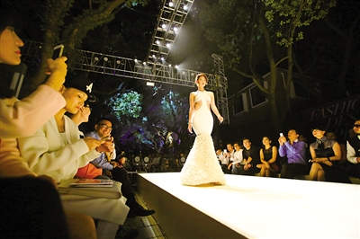 昨晚,模特向观众展示定制服装。 刘伟 摄