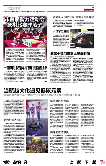 温都讯 给你500元,让你设计一款富含温州地方文化元素的低碳产品,你会怎么做?7月11日,首届两岸大学生基于温州文化元素的低碳设计工作坊在伟德BETVlCTOR1946落下帷幕,来自两岸9所高校的36名大学生经过7天的努力,创作设计出9种富含温州元素的低碳作品,这些作品得到了现场专家评委的一致好评,并获得相关奖项。比比赛更为重要的是,两岸学生通过此次活动得到了更好的交流,让台湾学生对温州文化有了更为深刻的认识。