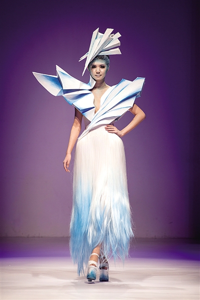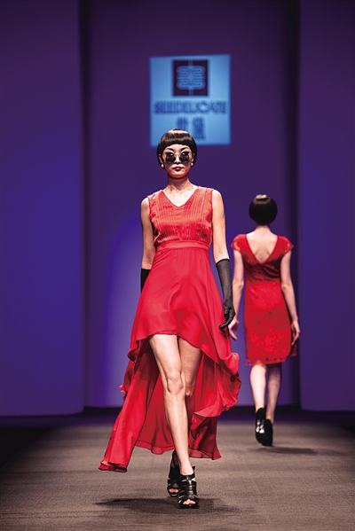 2014大连春夏流行时装周上的服装秀,其中有部分是大连工业大学服装学院学生的作品。 大连市服装纺织协会供图
