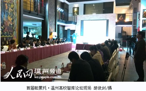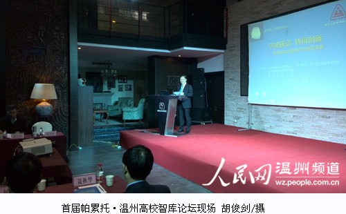 人民网温州3月31日电 今天下午,以“学城联动 协同创新——职业教育与温州产业转型发展”为主题的2014年第一场帕累托沙龙——温州高校智库论坛在浙江创意园举行。3个半小时里,来自政府、高校、科技机构的专家、学者共聚一堂,围绕学城联动、协同创新的主题畅所欲言、分享经验。