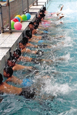 学游泳享清凉。