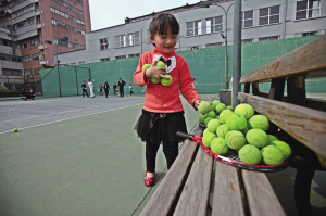 昨天下午1点半左右,20多名网球爱好者聚集在浙江工贸学院网球场,他们都是看了周三本报报道才报名参加体验活动的。体验者中,既有母女,也有夫妻,既有中青年人,也有小朋友。