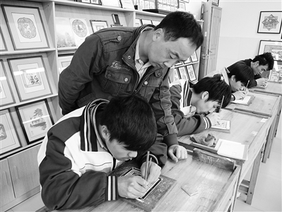 浙江工贸职业技术学校主动结对温州市特殊学校,派出专业教师为聋哑学生授课,培养出了一批温州瓯绣、瓯塑、细纹刻纸等非物质文化遗产继承人。这是高年级的孩子正练习在一寸见方的纸面刻出50条线条,且凭竹刀打的经纬格子线,随心所欲地刻出细如发丝的装饰纹样。