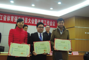 会议表彰了在伦敦奥运会和世界大赛上取得突出成绩的温籍运动员及其教练员。朱启南、吕志武(因比赛原因未能出席表彰会)、郭晓敏、蒋川被授予“温州竞技体育突出贡献奖”荣誉称号。朱启南的启蒙教练游秀霞、吕志武的启蒙教练林建国、郭晓敏的启蒙教练范杉、蒋川的启蒙教练胡网英被授予“温州市培养体育人才突出贡献奖”荣誉称号。