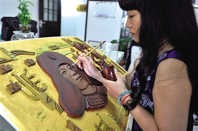 郑央凡的苦心努力,换来的是越来越多的学生们对瓯塑这门古老技艺的投入和坚持。一次上课,她发现学生朱熹涛的左手上缠上了厚厚的绷带,询问之下得知,他打篮球时不慎折伤了手,需要休养几个月,那时,他正在郑央凡的辅导下制作作品《朱雀图》。瓯塑是个细活,需要双手配合完成,而朱熹涛这样的情况,做起来特别费力。郑央凡不忍心,几次劝他先回去休养,伤好了再接着学,但他却不肯放弃,每课不落坚持了一个学期,完成了《朱雀图》。“我喜欢瓯塑,不想半途而废,一定要坚持把它完成。”如今,朱熹涛已经毕业,但他的那幅作品,仍挂在工作室的展柜里,而他当时对郑央凡说的那句话,也久久激励着她在传承瓯塑的道路上一直前行。