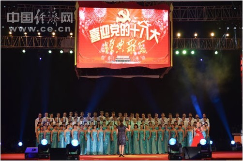 为迎接党的十八大胜利召开,工贸学院5000余名师生登台献艺。他们分成9大方阵,以中国革命和共产党发展历程为主线,整场歌会分“前进的号角、奋斗的历程、岁月的洗礼、春天的故事、和谐的颂歌”五个篇章进行。