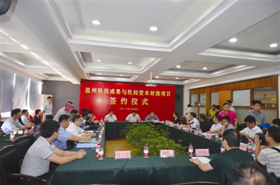 商报讯 搭建“资本”对接“知本”的平台,引导温州民间资本“炒技术”。昨天,温州民间资本与科技成果对接会在我市知识产权服务园举行,现场共促成12个项目成功牵手,其中9个项目现场签订合作协议,投资2060万元,另有3个项目达成投资意向,意向投资500多万元。