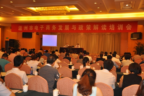 8月29日上午,全市电子商务发展与政策解读培训班在温州市新南亚大酒店召开。各县(市、区)商务主管部门分管领导、科室负责人,各有关行业协会负责人,相关企业负责人近400人参加了此次培训班。