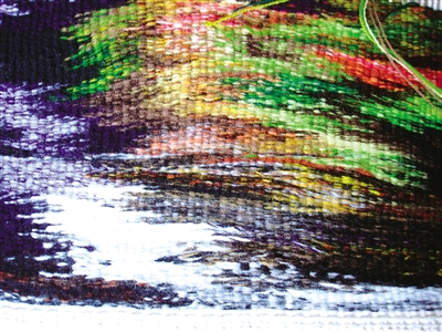 采访李嘉芝时,她正在上课,学生在她的精心指导下,正在进行纤维艺术的创作。走进教室,仿佛掉进了美丽的旋涡,偌大的教室里,每个人都有心中的一幅画,自我设计自我创作,抽象的、具象的,无不色彩斑斓,美意盎然。这项技能课,已经越来越受学生的喜欢。