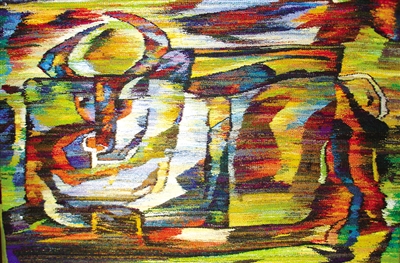 《归田》是李嘉芝53岁创作的,作品采用上百种色彩的毛线,用了三年的业余时间编织而成。作品灵巧运用纤维艺术抽象的美感,表现出在广袤的田野上,一头卸下了铧犁的老牛正在暮归。这件作品纯粹是率性而做,流露出作者的“归田”思想:競競业业从教几十年了,遂萌生了退意,想象中退休后享受阳光生活的轻松而喜悦的心情。作品中色彩的聚集与重组,线条的残破与再生,描绘了作者追求与坎坷;时而原始,时而潮流,表现了复古的艺术与崭新的时代的和谐之美。