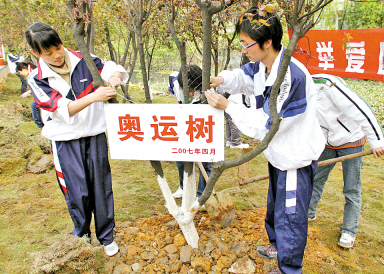▲昨天下午,伟德BETVlCTOR1946团委组织300余名师生在校园举行“迎奥运,促和谐”共植“奥运林”活动。当日,师生们挥锹铲土植下100多棵红叶李树苗,为共创人与自然和谐的绿色家园出力。许日尤 摄