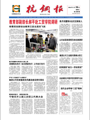 调研中,郝平副部长对工贸学院在师生创新创业工作和非物质文化遗产传承教学方面的探索、努力和成绩予以充分肯定,特别对工贸学院创新创业教育给予高度评价,认为创新创业教育在工贸学院发生了质的飞跃。
