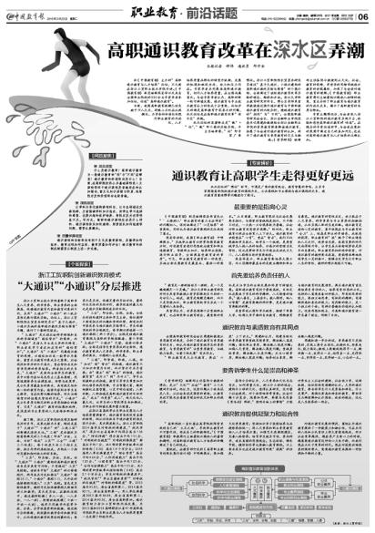 据了解,浙江工贸职院的这项实验研究历时多年,成果也颇为丰富,特别是基于“大通识”“小通识”的“三线三环”创新模式很受关注。“三线”是由教改实验需要确定的三个向度(即由“方法、主体、目标”构成“三实”“三全”“三通”三个向度),每个向度又由三个相互支持、相互作用的层级组成,并构成一个相对完整和相对独立的环系统。