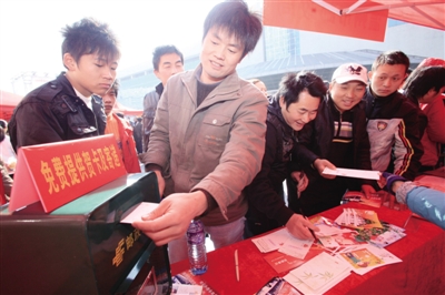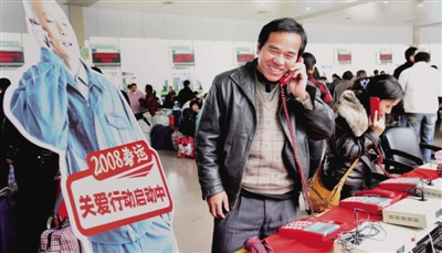 从2009年开始,“春运关爱行动”的服务项目不断升温。姜汤、热牛奶,为乘客驱走寒冷;方便面、热水饺成为解饥粮食;免费平安电话,向家人捎去祝福与思念;心理咨询扩展出法律服务、记者倾听和健康咨询,全方位关怀民工生活。
