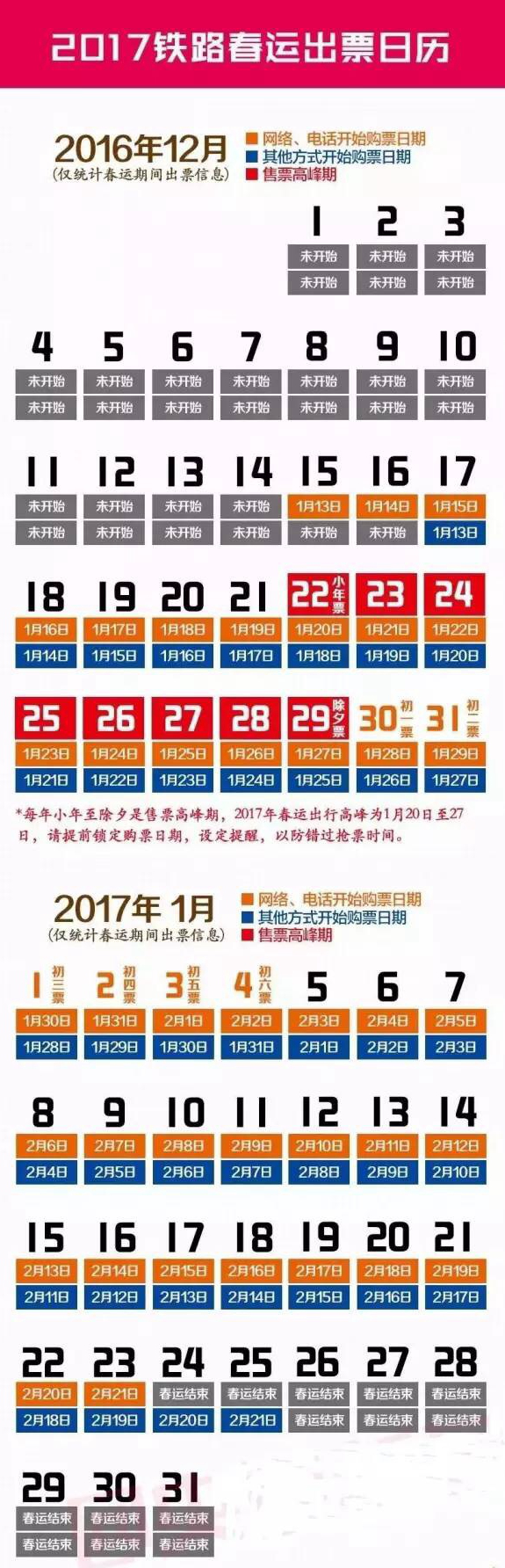 中国铁路客户服务中心12306网站发布的公告指出,因部分新线即将开通运营,铁路部门将调整列车运行图,12月30日之后车票预售期调整为30天,12月29日及之前的车票正常发售。从本月15日起,就能购买到2017年1月13日春运第一天的车票。