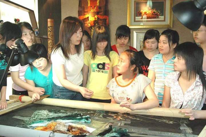从2006年开始,工贸学院开始面向全院学生开设《瓯绣技法》《瓯塑技法》公选课,每班10人,这一年,30岁的郑央凡来校执教。