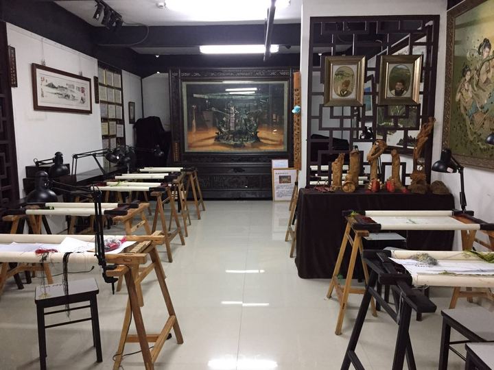摆放着《国韵祥和》的瓯绣实训室 浙江新闻客户端记者石天星 摄