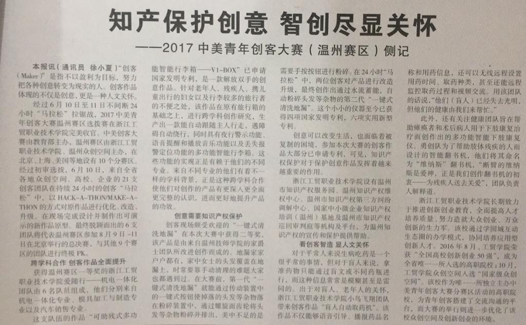 创意可以改变生活,也面临着被复制的困境,参加本次大赛的创客作品大部分已申请专利,可见,知识产权保护对于保护创意作品发挥着越来越重要的作用。