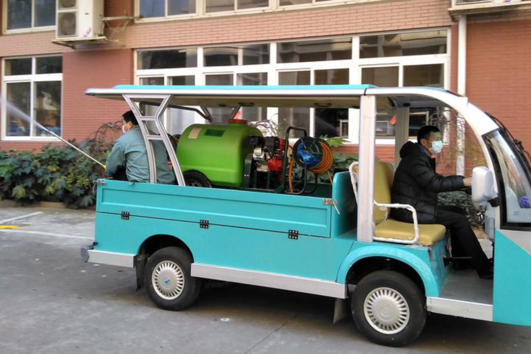 为了保证消毒工作的高效,马老师及团队还发挥主观能动性将电瓶货运车改造成了消毒车。为了做好开学后疫情的防控与处置工作,学院在瓯江口新校区设立了临时集中医学隔离点。为了能让隔离点设施更舒适、完善,马有新和他的团队克服万难,千方百计协调解决水电、热水供应、生活用品采购等问题。