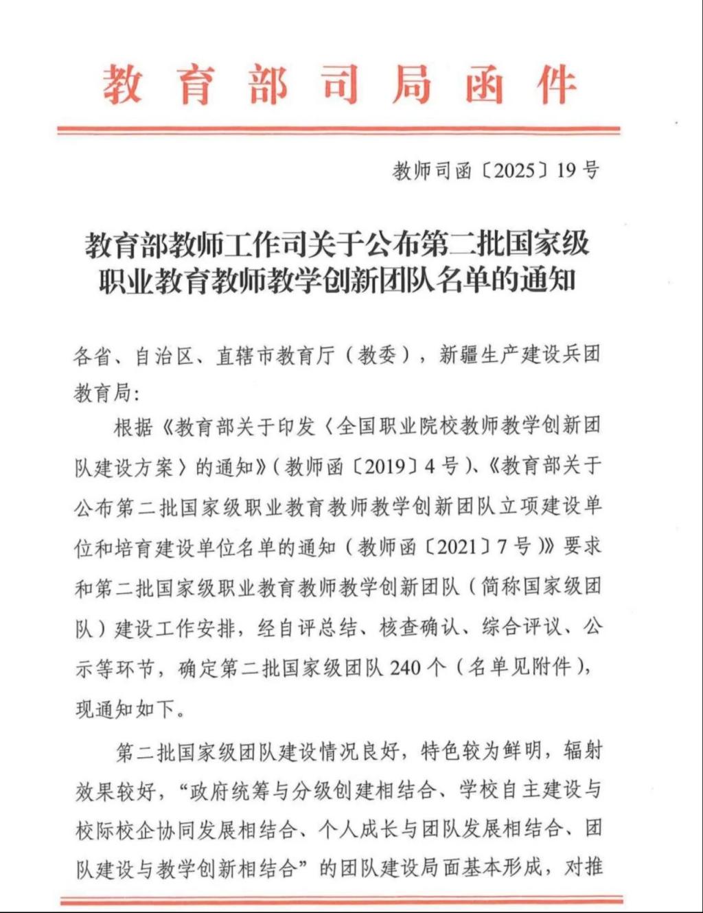 近日,教育部教师工作司发布《关于公布第二批国家级职业教育教师教学创新团队名单的通知》,我校国际商贸学院电子商务专业教师教学创新团队历经三年持续建设,顺利通过验收,成功获评“国家级职业教育教师教学创新团队”。